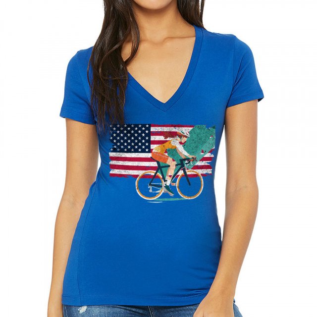 American Cycling Women’s V-Neck T-Shirt – USA Flag V-Neck Tee – Patriotic T-Shirt