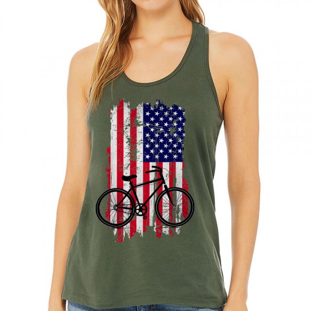American Flag Bicycle Women’s Racerback Tank – Patriotic Tank Top – Retro Design Workout Tank