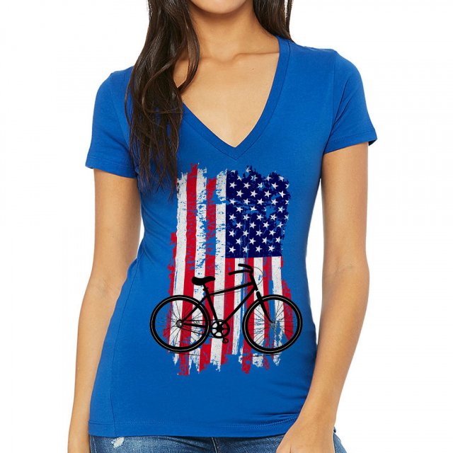The fabric of our shirt is super soft, lightweight, breathable, and cozy. American Flag Bicycle Women’s V-Neck T-Shirt features a modern feminine fit, deep V-neck, short sleeves and superior Airlume combed and ring-spun cotton.