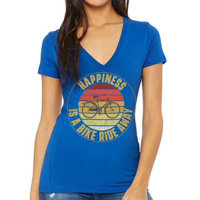 The fabric of our shirt is super soft, lightweight, breathable, and cozy. Bike Ride Away Women’s V-Neck T-Shirt features a modern feminine fit, deep V-neck, short sleeves and superior Airlume combed and ring-spun cotton.