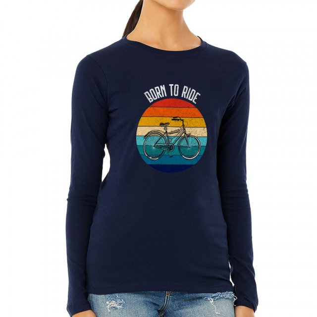 Born to Ride Women’s Long Sleeve T-Shirt – Vintage Design Long Sleeve Tee – Biking Quotes T-Shirt