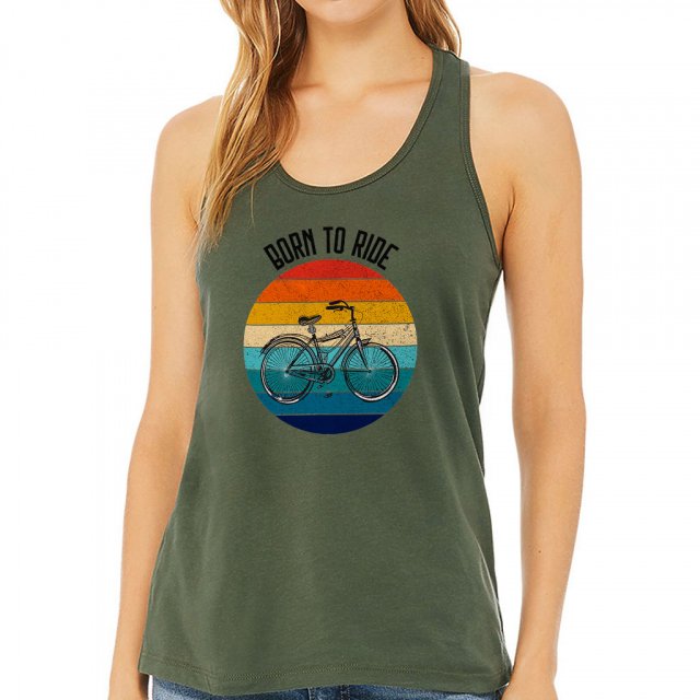 Born to Ride Women’s Racerback Tank – Vintage Design Tank Top – Biking Quotes Workout Tank