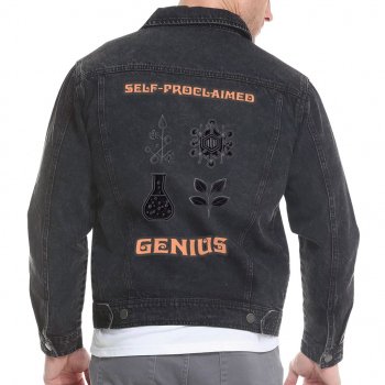 Genius Men’s Vintage Denim Jacket – Cool Black Denim Jacket – Funny Jacket for Men