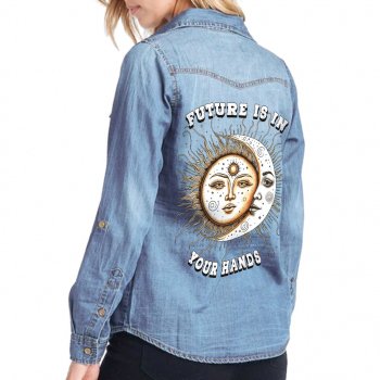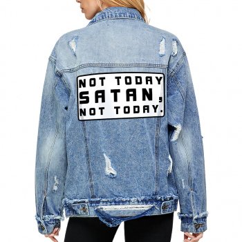 Not Today Satan Women’s Oversized Denim Jacket – Cool Quote Ladies Denim Jacket – Printed Denim Jacket