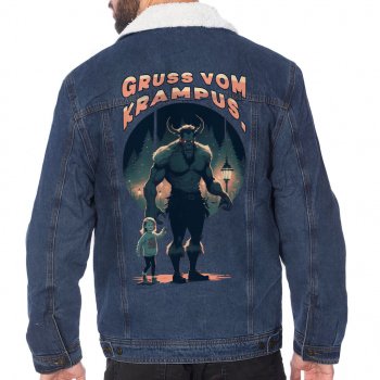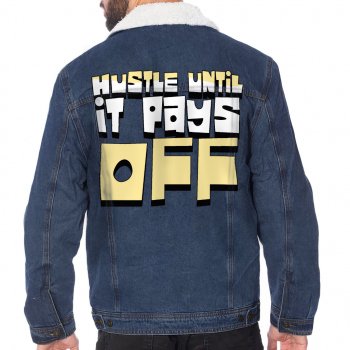 Hustle Men’s Sherpa-Lined Denim Jacket – Cool Saying Denim Jacket – Best Design Jacket for Men