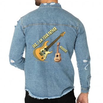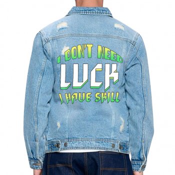 Fishing Themed Men’s Distressed Denim Jacket – Quotes Printed Denim Jacket for Men – Cool Denim Jacket