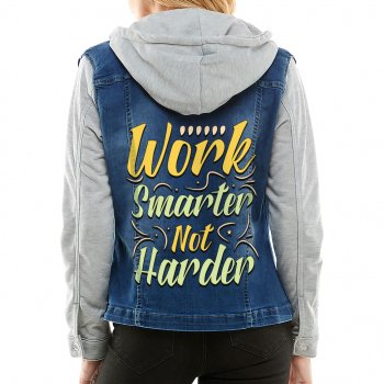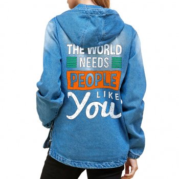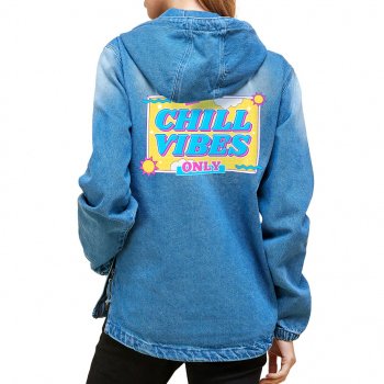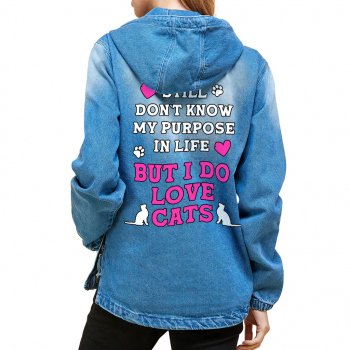 I Love Cats Women’s Denim Jacket with Hoodie – Cute Ladies Denim Jacket – Trendy Denim Jacket
