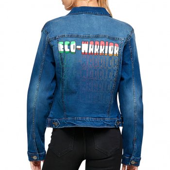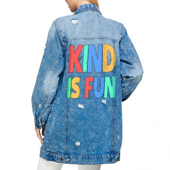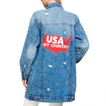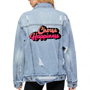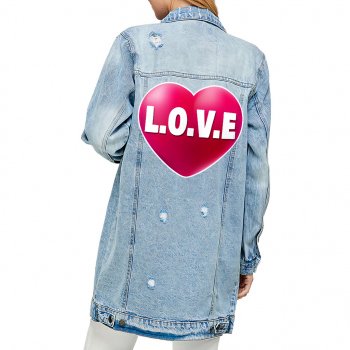 Love Ladies Denim Jacket with Distressed – Heart Print Women’s Denim Jacket – Illustration Denim Jacket