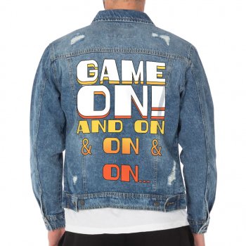 Game on Men’s Distressed Denim Jacket – Cool Denim Jacket for Men – Best Design Denim Jacket