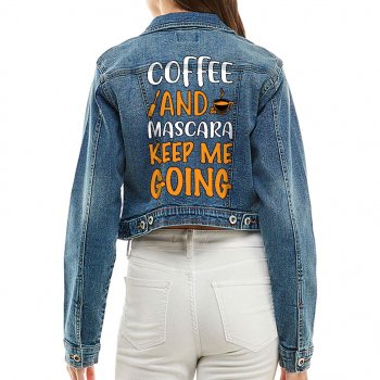 Coffee and Mascara Cropped Ladies Denim Jacket – Trendy Women’s Denim Jacket – Printed Denim Jacket