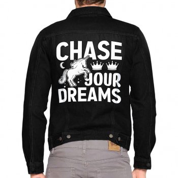 Chase Your Dreams Dark Washed Men’s Denim Jacket – Funny Denim Jacket – Cool Jacket for Men