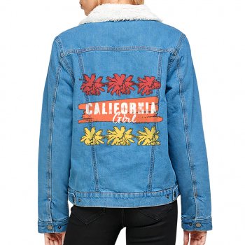 California Girl Women’s Sherpa Denim Jacket – Cute Illustration Ladies Denim Jacket – Trendy Denim Jacket
