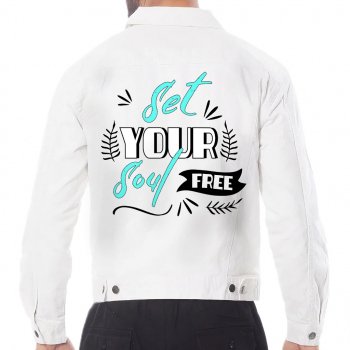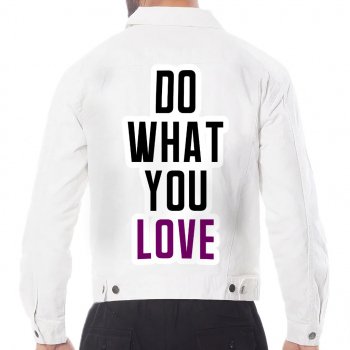 Do What You Love Men’s White Denim Jacket – Cool Saying Denim Jacket for Men – Best Quote Denim Jacket