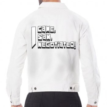 Funny Quote Men’s White Denim Jacket – Sarcastic Denim Jacket for Men – Printed Denim Jacket