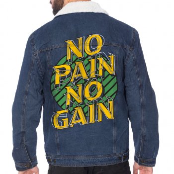 No Pain No Gain Men’s Sherpa-Lined Denim Jacket – Trendy Denim Jacket – Best Design Jacket for Men