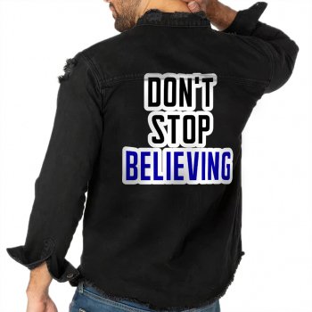 Don’t Stop Believing Men’s Vintage Denim Shirt Distressed – Inspirational Quote Black Denim Shirt – Cute Design Denim Shirt for Men