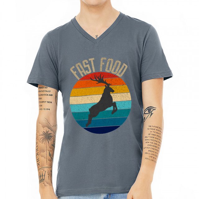 Fast Food V-Neck T-Shirt – Retro Sunset T-Shirt – Hunting Quotes V-Neck Tee
