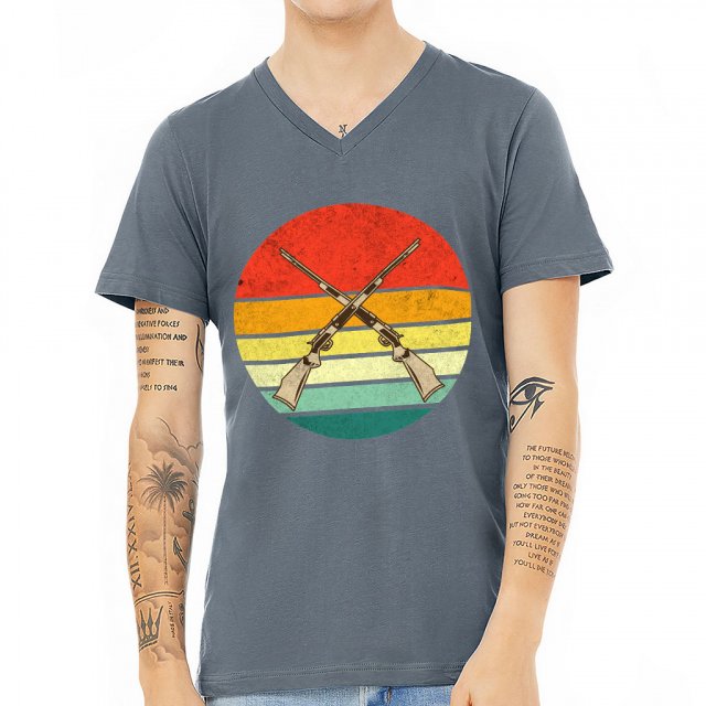 Hunting Guns V-Neck T-Shirt – Retro Design T-Shirt – Retro Sunset V-Neck Tee