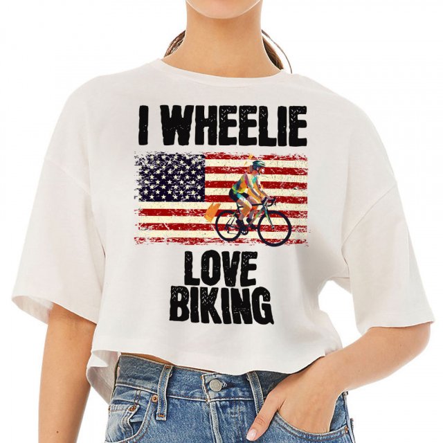 I Love Biking Women’s Crop Tee Shirt has a great look and cool fit. No matter what time of the year it is, you have a shirt for it all! This cropped t-shirt is the perfect way to make a statement. This t-shirt is made of soft cotton, which will not easily deform, and is breathable as well as comfortable, making you feel comfy all day.