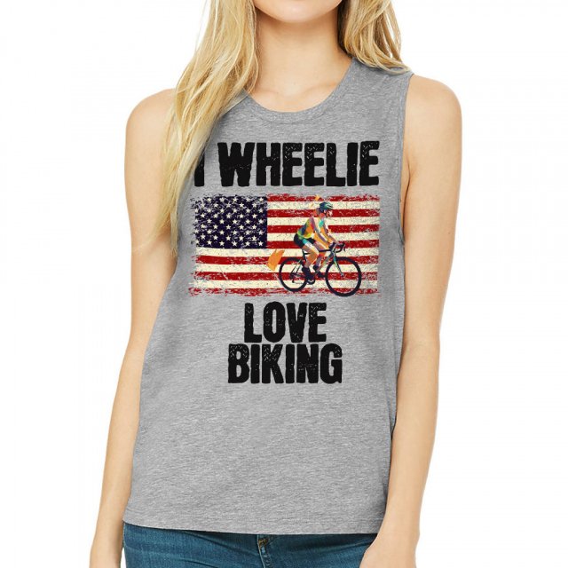 I Love Biking Women’s Muscle Tank – Retro Design Tank Top – Quotes Printed Workout Tank