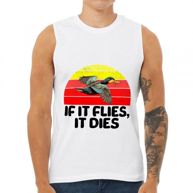 If It Flies It Dies Men’s Muscle Tank – Duck Print Men’s Sleeveless T-Shirt – Hunting Themed Tank
