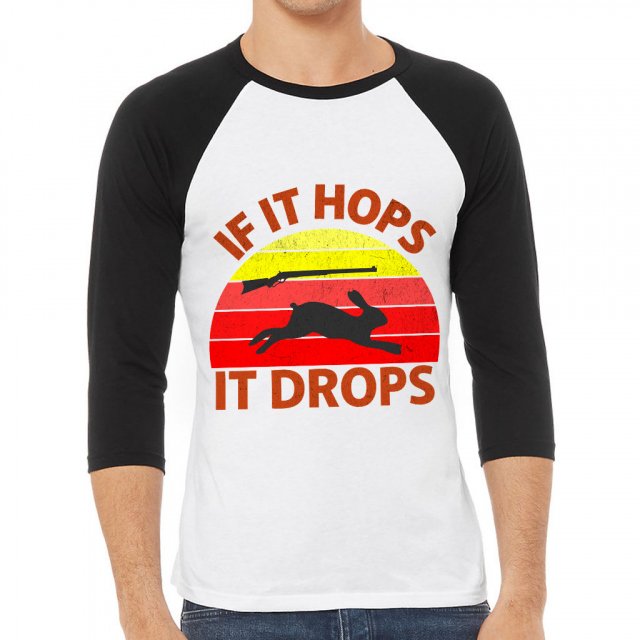 If It Hops It Drops Baseball T-Shirt – Hunting Print T-Shirt – Quote Design Baseball Tee