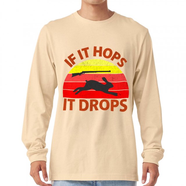 If It Hops It Drops Long Sleeve T-Shirt – Hunting Print T-Shirt – Quote Design Long Sleeve Tee