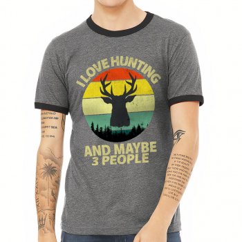 I Love Hunting Ringer T-Shirt – Retro Style T-Shirt – Quote Design Ringer Tee