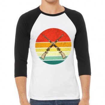 Hunting Guns Baseball T-Shirt – Retro Design T-Shirt – Retro Sunset Baseball Tee