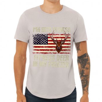 Hunting State Curved Hem T-Shirt – American Flag T-Shirt – Printed Curved Hem Tee