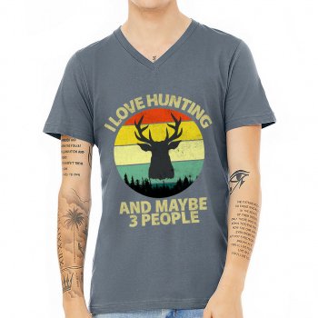 I Love Hunting V-Neck T-Shirt – Retro Style T-Shirt – Quote Design V-Neck Tee
