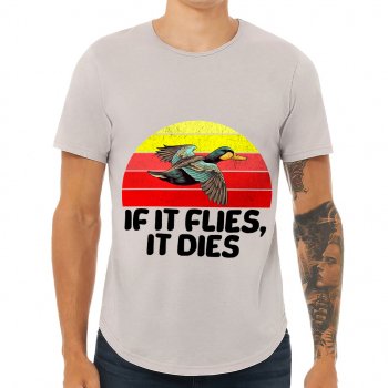 If It Flies It Dies Curved Hem T-Shirt – Duck Print T-Shirt – Hunting Themed Curved Hem Tee