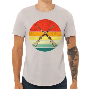 Hunting Guns Curved Hem T-Shirt – Retro Design T-Shirt – Retro Sunset Curved Hem Tee