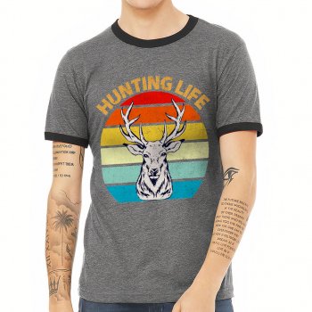 Hunting Life Ringer T-Shirt – Retro Design T-Shirt – Quotes Printed Ringer Tee