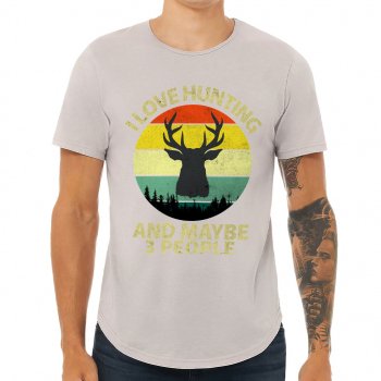 I Love Hunting Curved Hem T-Shirt – Retro Style T-Shirt – Quote Design Curved Hem Tee