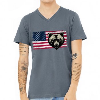 Hunting State V-Neck T-Shirt – American Flag T-Shirt – Printed V-Neck Tee