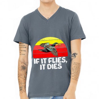 If It Flies It Dies V-Neck T-Shirt – Duck Print T-Shirt – Hunting Themed V-Neck Tee