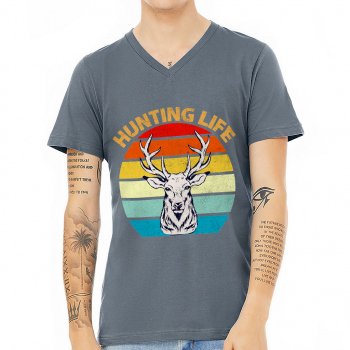 Hunting Life V-Neck T-Shirt – Retro Design T-Shirt – Quotes Printed V-Neck Tee