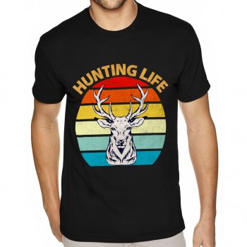 Hunting Life Short Sleeve T-Shirt – Retro Design T-Shirt – Quotes Printed Short Sleeve Tee