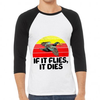 If It Flies It Dies Baseball T-Shirt – Duck Print T-Shirt – Hunting Themed Baseball Tee