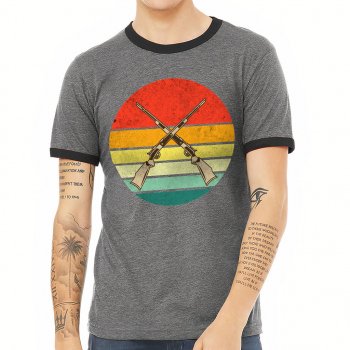 Hunting Guns Ringer T-Shirt – Retro Design T-Shirt – Retro Sunset Ringer Tee