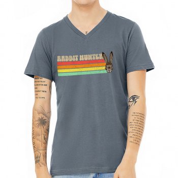 Rabbit Hunter V-Neck T-Shirt – Vintage Style T-Shirt – Printed V-Neck Tee