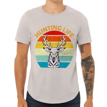Hunting Life Curved Hem T-Shirt – Retro Design T-Shirt – Quotes Printed Curved Hem Tee