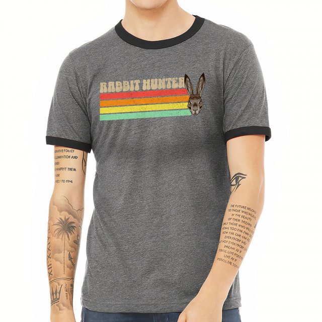 Rabbit Hunter Ringer T-Shirt – Vintage Style T-Shirt – Printed Ringer Tee