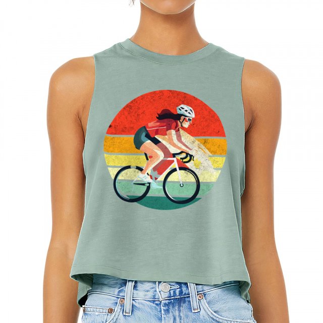 Racing Bike Racerback Cropped Tank – Retro Design Women’s Tank – Printed Tank Top