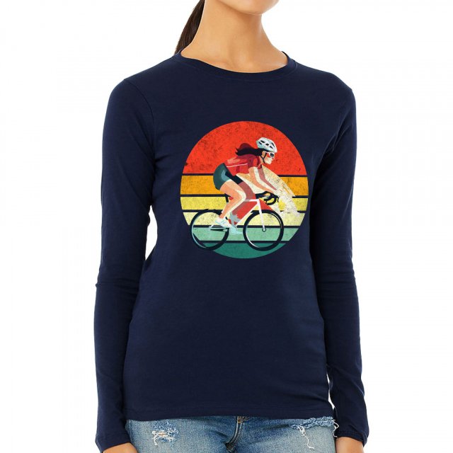 Racing Bike Women’s Long Sleeve T-Shirt – Retro Design Long Sleeve Tee – Printed T-Shirt