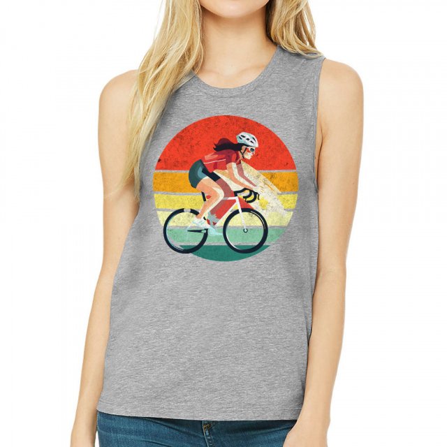 Racing Bike Women’s Muscle Tank – Retro Design Tank Top – Printed Workout Tank