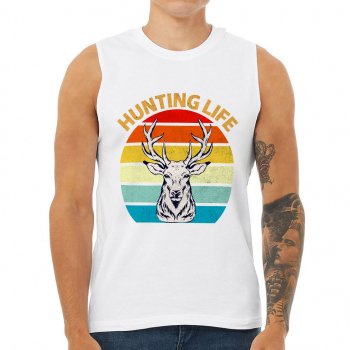 Hunting Life Men’s Muscle Tank – Retro Design Men’s Sleeveless T-Shirt – Quotes Printed Tank