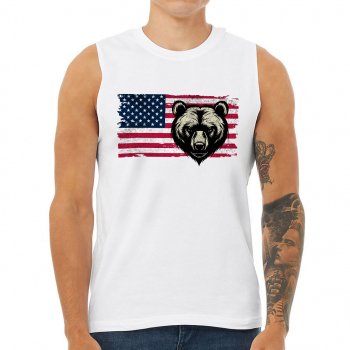 Hunting State Men’s Muscle Tank – American Flag Men’s Sleeveless T-Shirt – Printed Tank