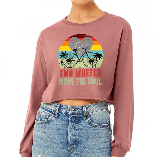 Two Wheels Move the Soul Cropped Long Sleeve T-Shirt – Cycling Lover Women’s T-Shirt – Quotes Printed Long Sleeve Tee